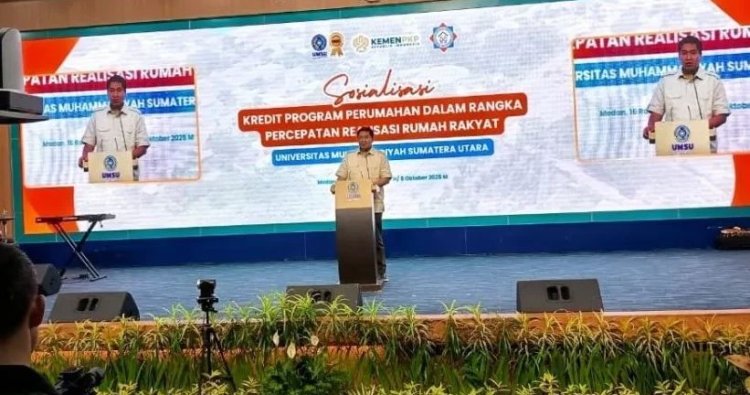 MEDAN - Kementerian Perumahan dan Kawasan Permukiman (PKP) menggebrak sosialisasi Kredit Program Perumahan (KPP) di Universitas Muhammadiyah Sumatera Utara (UMSU) Medan, Rabu (08/10/2025). Langkah ini merupakan bagian dari upaya percepatan penyediaan rumah layak bagi masyarakat, khususnya UMKM agar dapat 'naik kelas' dalam ekosistem perumahan nasional.